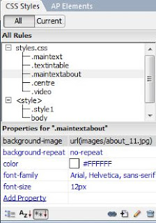 After creating the CSS styles I clicked on the cell and set the style in the properties panel. I also used CSS to set my font and font colour. I chose Arial as it is simple and professional it is also easy to read for users of the website. It has also been used in my work and so represents this.